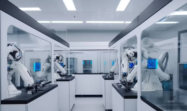 Instalaciones de investigación cuántica, donde los robots manipulan materiales extremadamente sensibles.